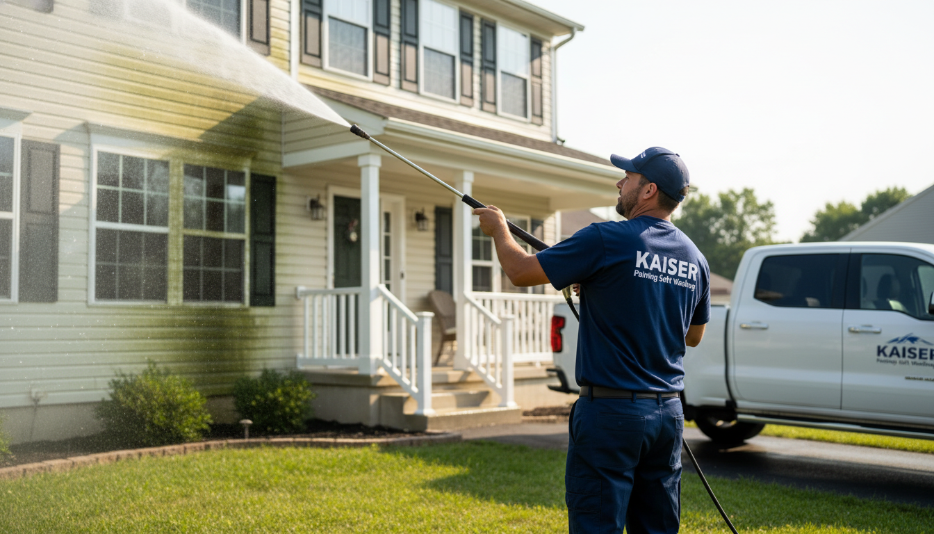 At Kaizer Painting & Softwashing, we specialize in gentle soft pressure washing that safely removes dirt, mold, mildew, and grime from your home’s exterior without causing damage. Our eco-friendly process restores the beauty of sidings and decks while protecting surfaces from the wear and tear of harsh cleaning methods. Give your property a fresh, clean look and boost curb appeal with our trusted soft washing service.